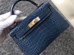 愛馬仕迷妳凱莉包2代 Hermes Minikelly N7風暴藍 Blue Tempete 美洲鱷