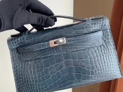 Hong Kong Hermes MiniKelly Pochette N7 Blue Tempete 風暴藍 美洲鱷