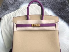 臺灣臺中市 Hermes Birkin 25cm Togo S2 Trench 風衣灰 P9 Anemone 海葵紫