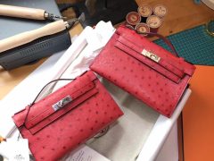 愛馬仕Hermes Minikelly壹代 Q5 Rouge Cossacks中国红鸵鸟 可爱迷人 金色金属