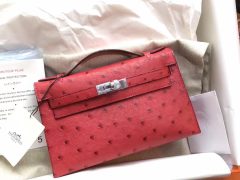 愛馬仕Hermes Minikelly壹代 Q5 Rouge Cossacks中国红鸵鸟 可爱迷人 银色金属