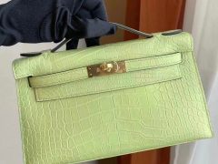 愛馬仕迷你凱莉包一代 Hermes MiniKelly Pochette R9 Jaune Bourgeon 嫩芽黃美洲鱷魚