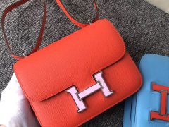 Los Angeles USA Hermes Constance 19cm S3心紅色配 X9錦葵紫 琺瑯扣