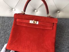 Aomen Hermes Kelly 25cm 羊皮反絨 麂皮 S3心紅色 Rose de course