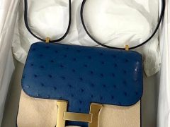 香港葵青區愛馬仕 Hermes Constance 19cm Ostrich S4 Deep Blue