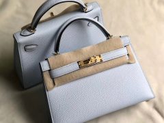 香港灣仔區愛馬仕包包 Hermes MiniKelly Pochette Swift T0 Blue Brume 霧藍色