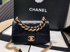 劉雯香奈兒新款嬉皮包 黑色小牛皮、羅緞與金色金屬