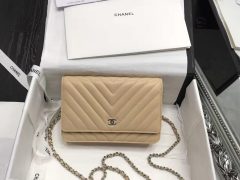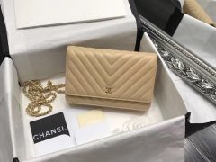 Wallet On Chain V型小羊皮經典款杏色 銀色五金