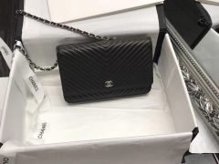 Wallet On Chain V型小羊皮经典款黑色 银色五金