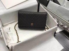 Wallet On Chain V型 小羊皮经典款黑色 金色五金