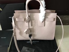 YSL小號SAC DE JOUR SOUPLE 粉色小牛皮 鱷魚壓花真皮包 SAINT LAURENT浮飾金屬