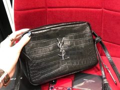YSL Camera bag LOU啞光黑色小牛皮 鱷魚紋理壓花真皮相機包