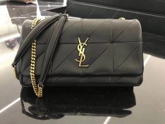 YSL Jamie bag 中號黑色羊皮拼接真皮包 四合扣封口翻蓋包