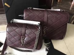 YSL聖羅蘭 經典SAINT LAURENT酒红色真皮手提包帶金屬鏈