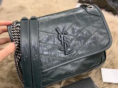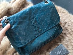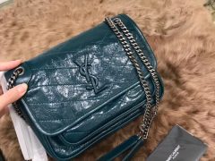 YSL中號 NIKI 褶皺霧絎縫 蓝绿色小牛皮鏈條包 monogramme saint laurent前翻蓋包
